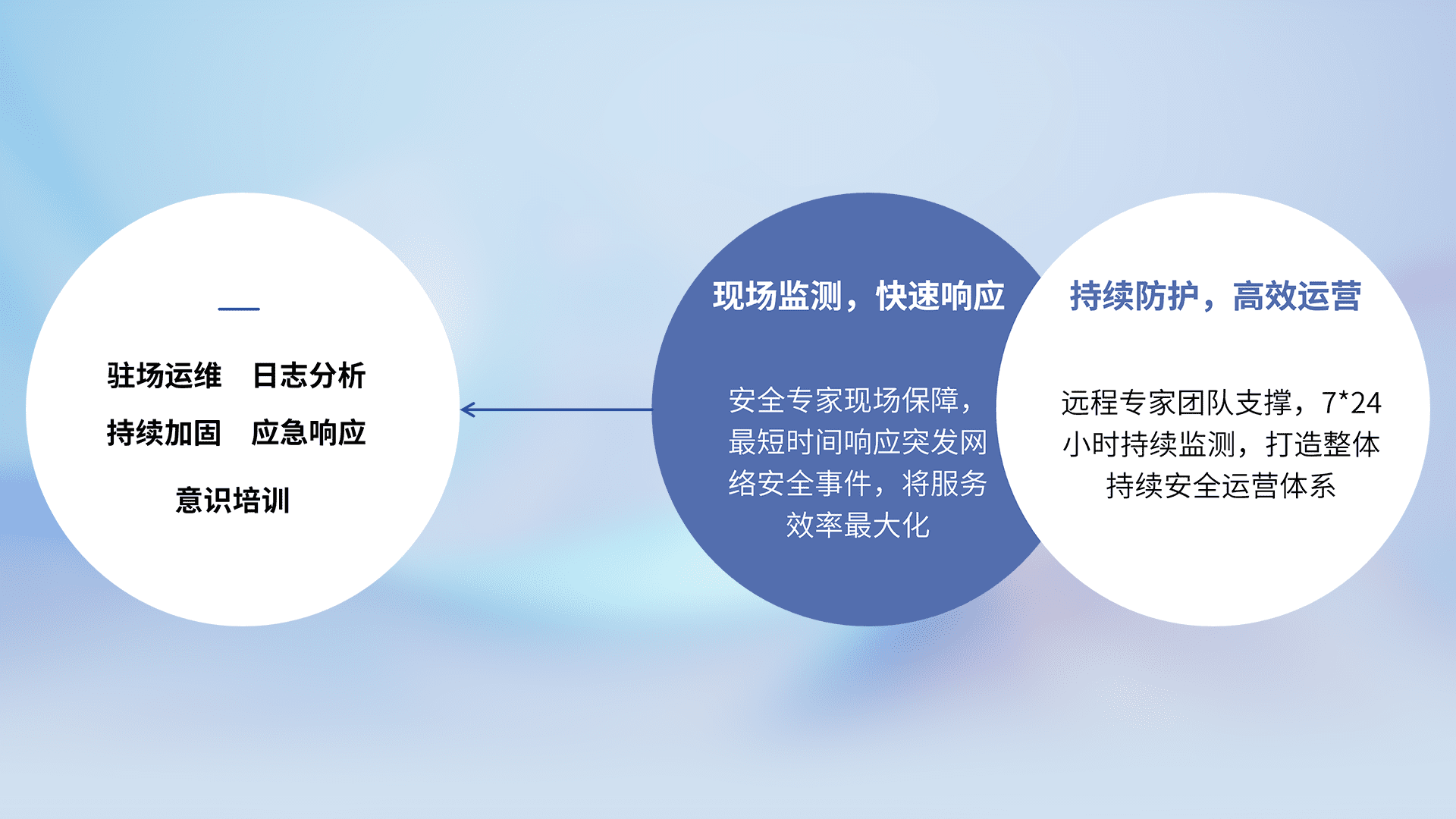 7X24小时持续监测安全事件,保持安全策略有效性,降低资产脆弱性风险,,,,精准拦截黑客攻击,,减少被黑客利用的机会,,,,第一时间遏制,,,,降低损失。。